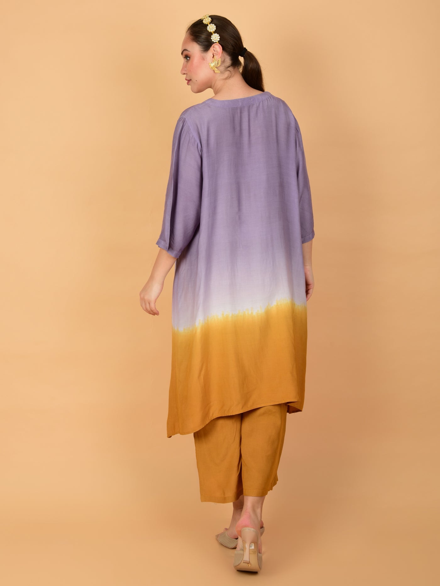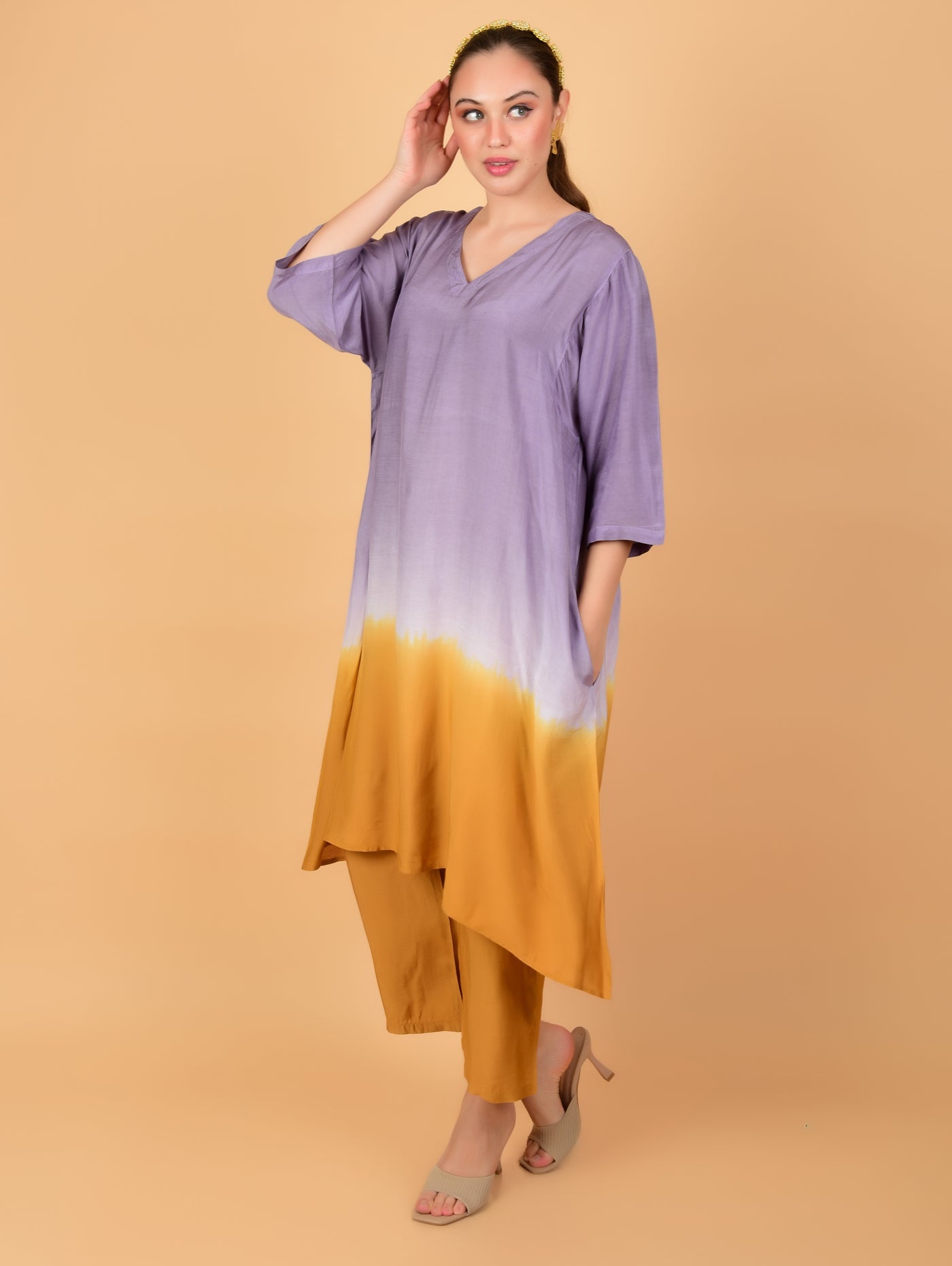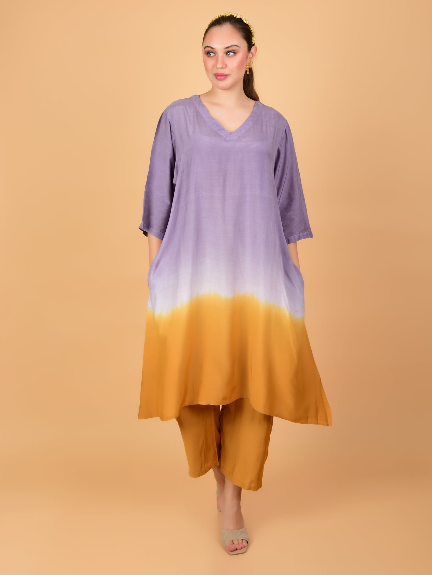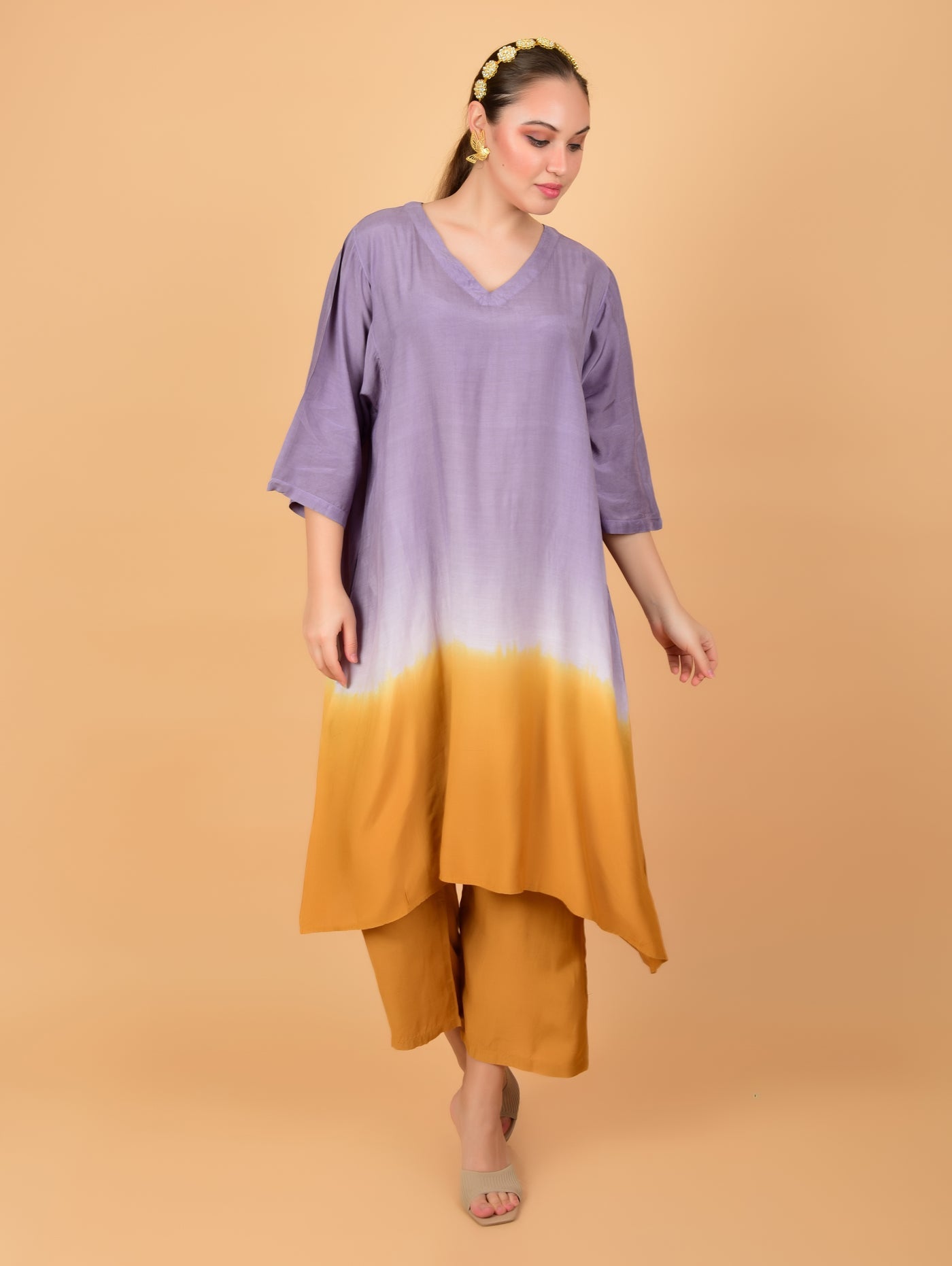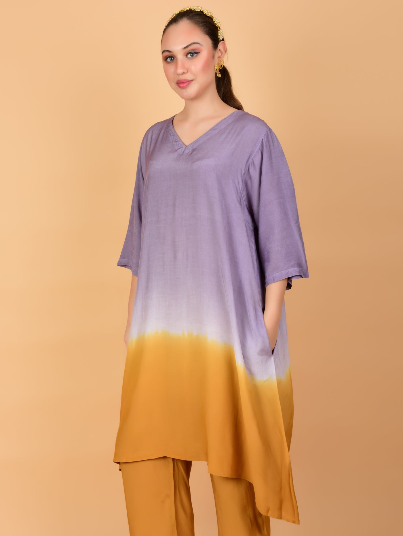 Immerse yourself in effortless style with our BreezeBloom Antifit Bliss Set. Crafted from 5 meters of sumptuous muslin silk, this set ensures unparalleled comfort and a relaxed fit. Featuring convenient pockets and hand-dipped in-house with enchanting summer colors, our debut option showcases a harmonious blend of lilac and mustard. Elevate your wardrobe with this perfect fusion of comfort and chic sophistication