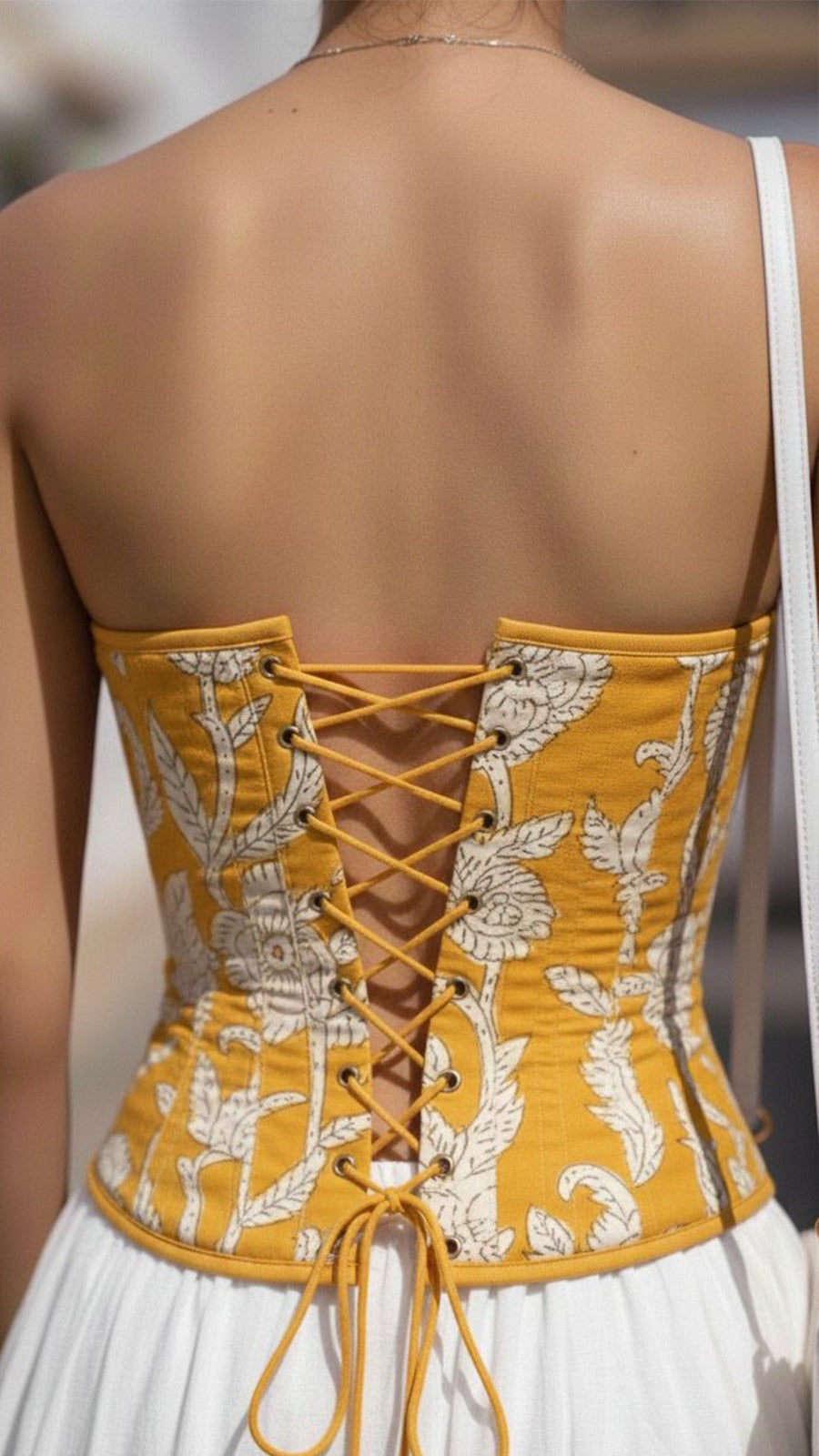Sorrento Tales is a corset that defines the waist with clean structure and comfort. It holds its form, smooths the torso, and still lets you sit through dinner without thinking about it.